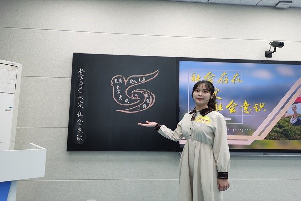 谈到竞赛,胡雅静认为教学技能锻炼和思想政治教育专业学习是相辅相成的关系。思政专业的学习为锻炼教学技能提供理论指导,而理论来源于实践,最终也要应用于实践。因而,参与相关竞赛不仅是对个人理论知识的检验,更能为未来真正站上讲台积累一定经验。新时代大学生不仅要妙笔生花,还要能言善辩。不仅能够逻辑清晰,理论严密,写得出好文章,还要能把自己的思想理念宣传出去。锻炼教学技能也是专业学习的一种调剂,纯粹的理论学习具有枯燥性,参加一些教学比赛,不仅可以结识很多优秀的、有意思的人,而且对自己也是一种扩展。