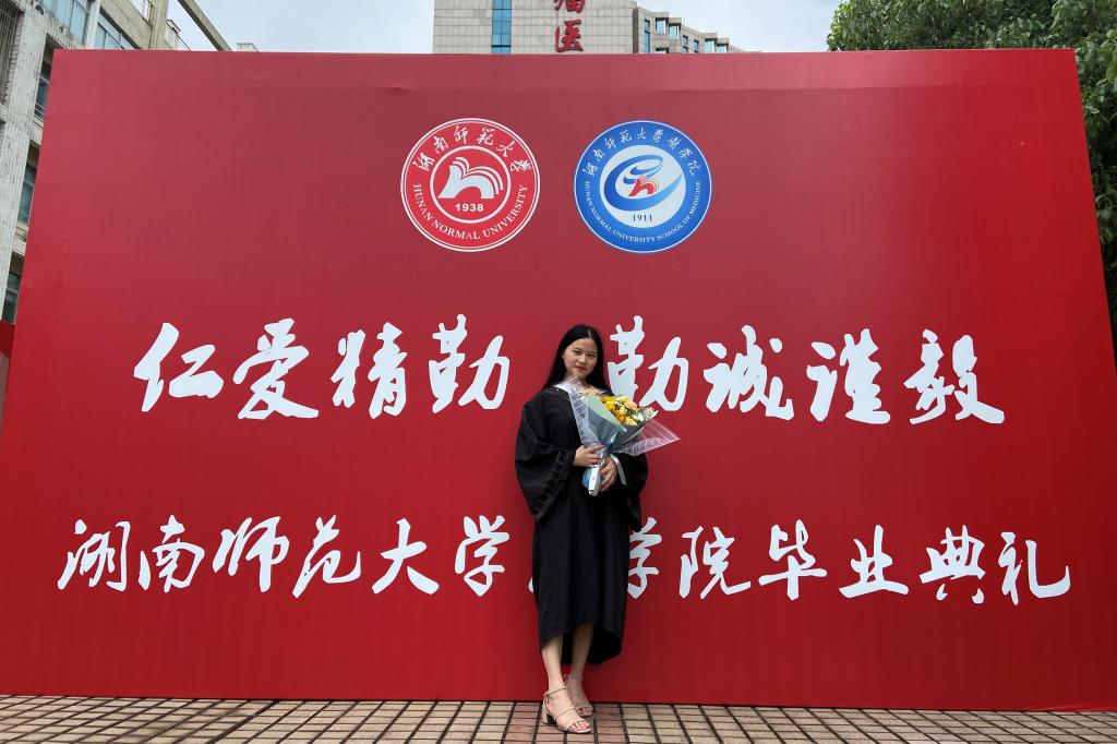 个人简介:彭晓峰,女,太阳成集团tyc医学院2015级临床医学专业学员,中共党员,现保研至浙江大学附属第一医院攻读硕士。湖南师大医学院小分子靶向药物发现与创制湖南省重点实验室纳米药物制剂研究方向学研组成员,参与纳米药物制剂在肿瘤靶向性治疗的方向研究。通过大学英语四六级考试(CET4-619, CET6-568), 专业成绩排名6/147。曾获三次国家励志奖学金,两次“太阳成集团tyc三好学生”,2016年获院生物化学知识竞赛二等奖,2017年获省青年马克思主义学习“优秀学员“,校“优秀朋辈心理辅导员”,校第60期入党积极分子培训班“优秀学员”,院“十佳创新创业标兵”称号,参与大学生创新实验项目《pH响应型PEG化聚精氨酸-姜黄素纳米制剂主动靶向肺癌治疗效力的研究》,并获得“优秀结题”;2018年获校一等综合奖学金,校“百优共青团员”,院“十佳学习标兵”,2019年获校二等综合奖学金。