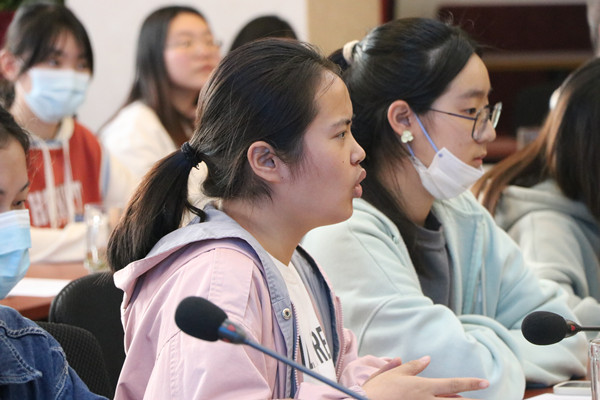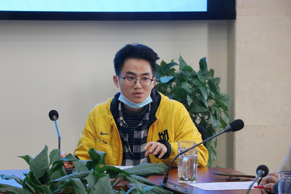 座谈会接近尾声,在之前已轮流发言完毕的18级心理班的李云飞,听了全场的发言,既作为学长又是学生工作者的他从双方角度发表了感想。他认为学生存在个体差异,不同人有不同诉求,学生自己目标不够清晰,校方应该帮助学生培养想在大学收获什么的意识。他希望老师和学生之间建立平衡点,多组织有效的见面会、交流会,增加沟通。在场学生和老师对于李云飞的讲述都表示非常赞同。