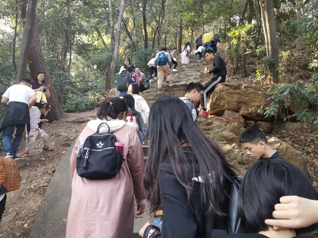会员们拾阶而上,向丛林深处漫溯,与麓山林海同呼吸。陡峭的阶梯无法阻挠他们不断向上的决心,谈笑间,已至山腰处。