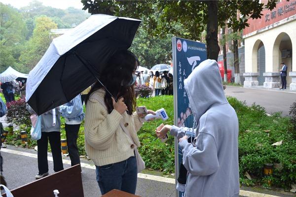 在顺利完成社团招新工作的同时,也仍需注重疫情防控工作。文学院始终将“安全”放在第一位,按照“测量体温、凭绿码进入”的要求,有条不紊地进行入场工作,确保学生安全。