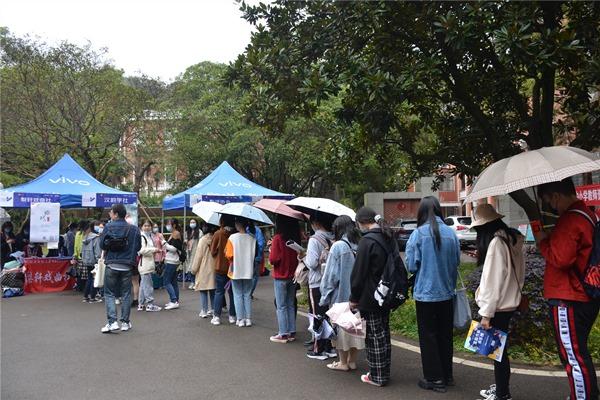 “青春无畏,逐梦扬威!志同道合,风雨无阻!”即使冒着微风细雨,同学们对心仪社团的向往也未曾消失。在全体志愿者的辛勤付出下,此次百团大战氛围热烈,最终画上圆满句号。