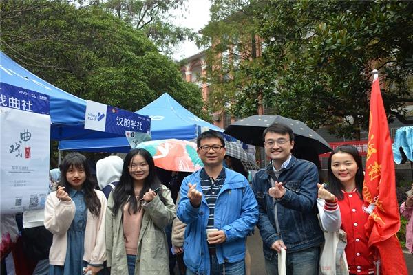 在社团招新工作开展得如火如荼时,文学院党委副书记熊剑峰等一行领导来社团招新点视察工作。耐心询问招新情况,鼓励各大社团加大宣传力度,并温馨提醒同学们在下雨天一定要注意安全、注意保暖。