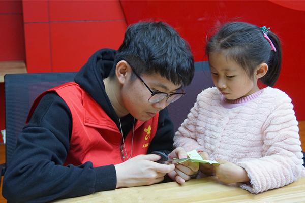 在折纸活动中,志愿者们手把手教小朋友们做漂亮的手工作品。小朋友们都非常好学,好奇心十足,动手能力很强,并在最后将做好的手工送给家长们,得到了家长们的夸奖。