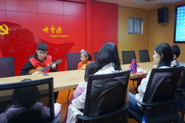 青工部志愿者用自带的尤克里里演唱《你笑起来真好看》,成功活跃了整个气氛,小朋友们跟随志愿者一起合唱,气氛十分和谐,家长们也表示此次歌曲贴合了“刷牙”的故事主题。