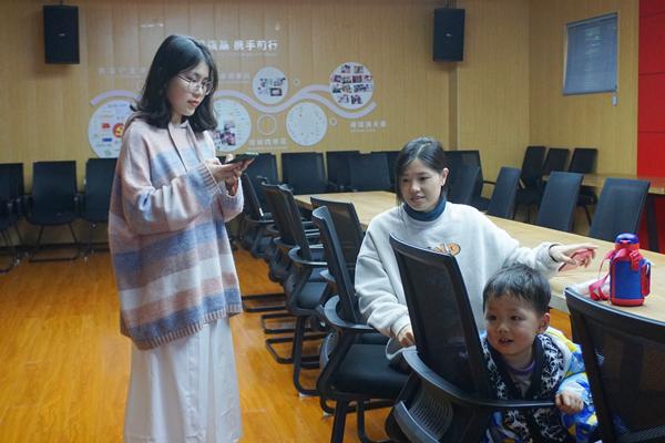 参加活动的儿童和家长到达后,家长与活动负责人进行沟通,提出了自己的意见,表示活动时间可以稍微做些调整以适应孩子们的作息时间,教学内容也可以更有趣更简单。志愿者和小朋友们亲切交谈,提前做一些小游戏活跃气氛。