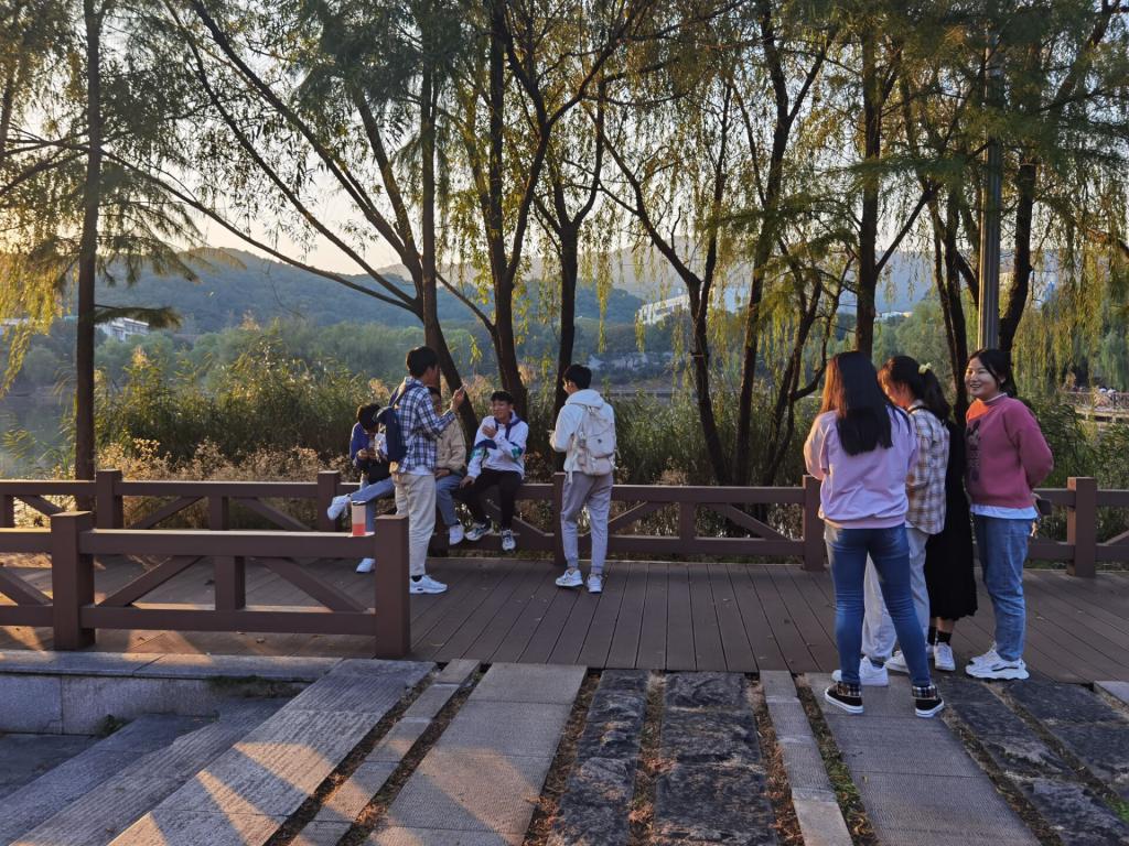 王俊昊同学带领2002班的同学们有序的前往洋湖公园,期间男女生们相处默契融洽,师大班级同学有了更多相互了解的机会,并由滕蜜同学为班级的男生记录这美好的时刻。