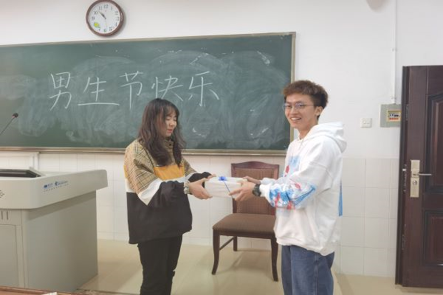 (通讯员 张怡然)为了迎接11月11日男生节的来临,2002班由女生委员滕蜜同学筹划了男生节活动。11月11日10时45分,化学化工学院2002班在201教室举行了男生节赠送礼物活动,此次活动彰显了同学们年轻的个性,充分展示了化工院2002团支部朝气蓬勃,奋发向上的精神风貌,特别是为2002班的男生们营造轻松温馨的节日气氛,增进了2002班男生与女生之间的默契,使2002班更加具有凝聚力。