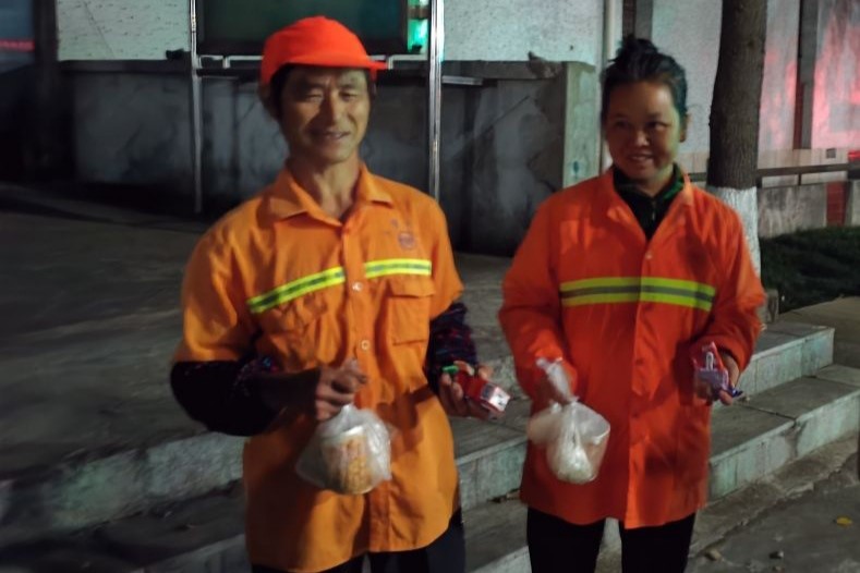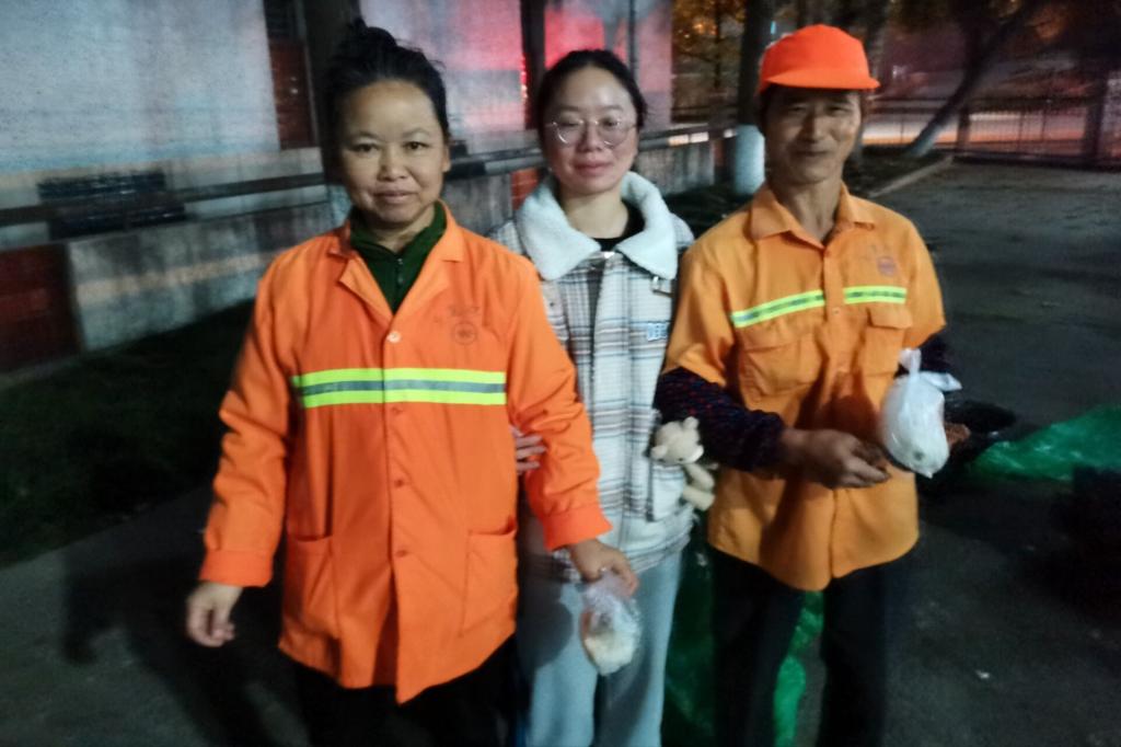 找到环卫工人后2004班的同学给环卫工人带来热乎的早餐,豆浆加包子,给寒冷的早晨增加温暖,更希望能驱散环卫工人的寒意和疲惫。这是一份能带来安慰的早餐,暖入心底。在和环卫工人交流的过程中了解到他们四点多起床,忙到六七点,实在辛苦。