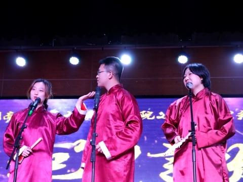 演艺说学惟妙惟肖,笑语赢得满堂精彩。三名曲艺组同学通过贴近生活的情境,用平实的语言得到了观众的共鸣,让现场爆发起一阵阵笑声。
