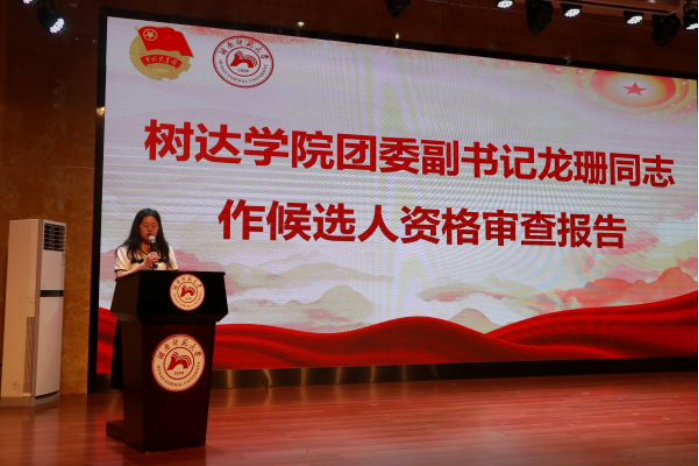 2021-2022学年团学组织主要负责人作工作报告。团员代表进行投票同时进行。侯文灿作树达学院第二十一届团委工作报告。