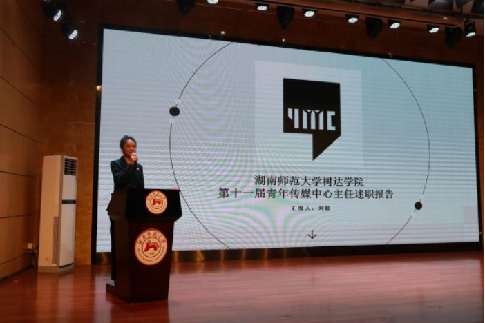 树达学院第十一届青年传媒中心主任刘懿作树达学院第十一届青年传媒中心工作汇报。