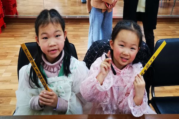看得出来孩子们对此次活动充满热情,制作完简牍的孩子们脸上洋溢着开心的笑容,高举着自己的简牍在镜头前兴奋地展示,黑色油笔的字迹在黄色简牍下更显清晰,上面的内容都是孩子们自己的成果,难怪孩子们如此喜爱,一脸的骄傲。