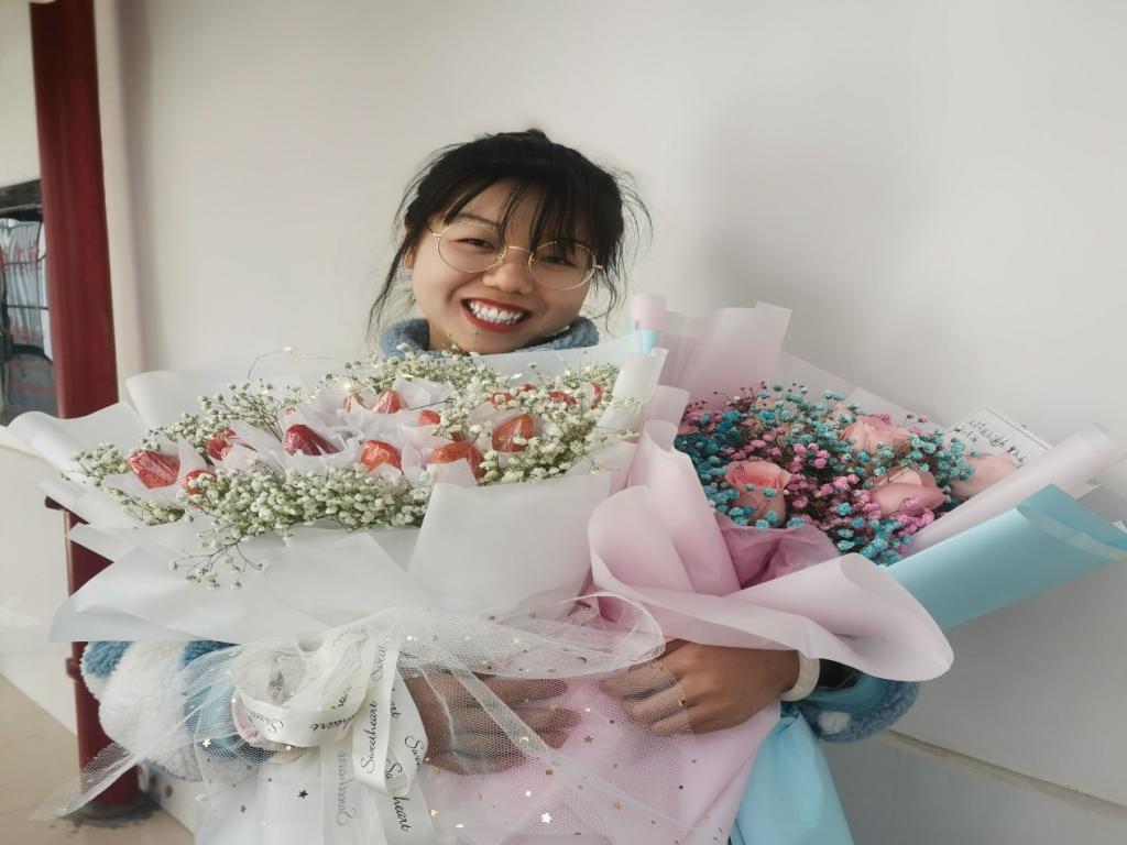 朱芸菲在大学四年间遇到了许多的人,她感恩遇到的每一个人,每一个人都或多或少的给了她帮助,他们成为她眼里的那束光,成为她前进的方向。她感谢自己进入了一个好的部门,遇见了好部长;感谢疫情肆掠在家上网课时同学间的互帮互助;感谢在湖师大通过各种志愿活动、化学竞赛遇见的“饭友”、感谢当班导遇见一群可爱的小朋友……