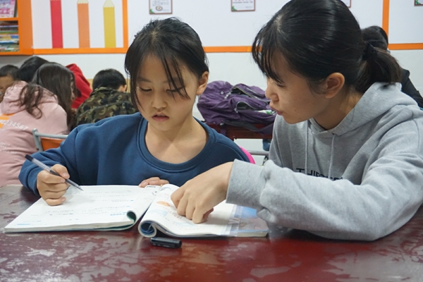 “吾生也有涯,而知也无涯” ,在一个小时的课后辅导结束后,志愿者通过听写生字的方式来让同学们巩固所学知识。志愿者们表示,在这个过程中,她们也有了对自己十几年学习生涯的新的感悟。所谓“温故而知新”便是如此。