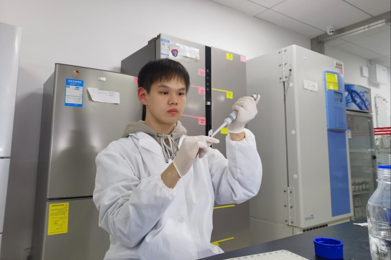 邓卓宜于大一暑假通过面试提前进入淡水鱼类发育生物学国家重点实验室冯浩教授课题组学习。实验室里,邓卓宜勤耕不辍,系统学习掌握了分子克隆、基因功能表征等多种实验技术,合理利用好课余、周末和寒暑假的时间,每周定期在实验室推进实验进展。他刻苦钻研,积极向老师、师兄师姐请教学习,冲破科研中困难的壁垒,为后续科研学习的探索道路奠定坚实的基础。
