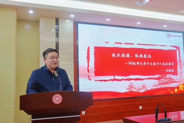 (通讯员 肖艳萍 谢知含)“饮水思源,依规致远”,这是万敏锐校长在第四届思源学生干部奖学金颁奖仪式暨“景德思源忆芳华,青春献礼二十大”校友景德论坛上作为99级校友进行演讲、分享个人成长经验时的主题。“饮水思源”,他不忘来时坎坷,字里行间铭记母校恩德;“依规致远”,他踏过万山风霜,从容谈笑捧上成长经验。
