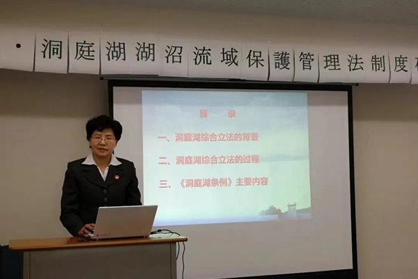 鲁迅先生在《文化偏至论》中写道:“人既发扬踔厉矣,则邦国亦以兴起”。李爱年作为国内最早提出洞庭湖综合立法的“第一人”,为洞庭湖法治建设做出巨大贡献。谈起选择这个科研项目的原因,她答道:“当时听说日本学者在研究洞庭湖,我就在想,我们自己的湖,外国人在研究,而我们自己不研究怎么行呢?”爱国之心灼灼,2015年李教授开始着手于洞庭湖立法研究,“刚开始搞也没想过要拿什么荣誉,就是坚持搞好。我这个人一旦开始做一件事,就不会被旁的事打扰,能坚持很久。”她笑着回忆,“记得那个时候,我不管去哪里做主旨报告,就围绕着这个主题,时间久了,大家都知道我在研究这个了。”俗话说“用一心者事必成”,她凭借这一份坚持和专注论证、设计并构建环环相扣的洞庭湖生态环境法治运行体系,在理论和实践方面产生了积极社会影响。正所谓“星光不问赶路人,时光不负有心人”,2019年“洞庭湖生态环境法治保障研究”中标国家社科基金重大招标课题;2020年《湖南省洞庭湖湿地保护法治保障研究报告》获湖南省第十四届社会科学优秀成果一等奖。该研究产生了重大社会影响,研究成果直接转化为洞庭湖保护的政策和立法,推动了《湖南省洞庭湖保护条例》于2021年顺利出台。
