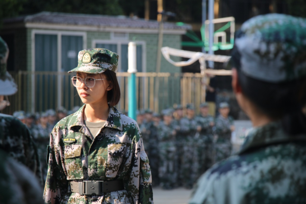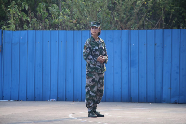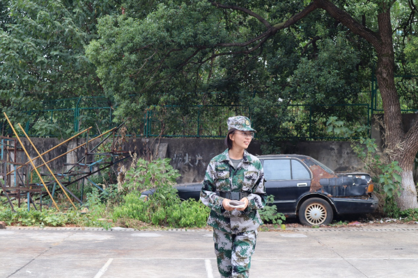 “立如芝兰玉树,笑如朗月入怀。”这是对施颖最好的形容。作为教官,训练场上她严肃认真,挺拔如松;在休息时刻她也会露出恬淡的微笑。“我还记得自己大一军训的时候,长沙很热,训练很累,而且还没有适应大学生活;这些困难对我来说,都是一次对自己的挑战。”谈起对军训的印象,施颖将自己的经历从容道来。九月长沙的烈日,似乎在妄想着将一切在自己的无端怒火中化作灰烬,但她的斗志却在这场火焰中愈烧愈烈。倾听着同学们的抱怨,她讲述起自己在军训中的蜕变:“通过军训,我更快地过渡到了大学生活,戒掉了懒散的习惯。”于她而言,迷彩是一场蜕变之战的战袍。 “玉经琢磨多成器,剑拔沉埋更倚天。”在这场汗与泪的鏖战中,她逆风完成了一次完美的蜕变羽化,生出一双有力的翅膀去搏击长空。