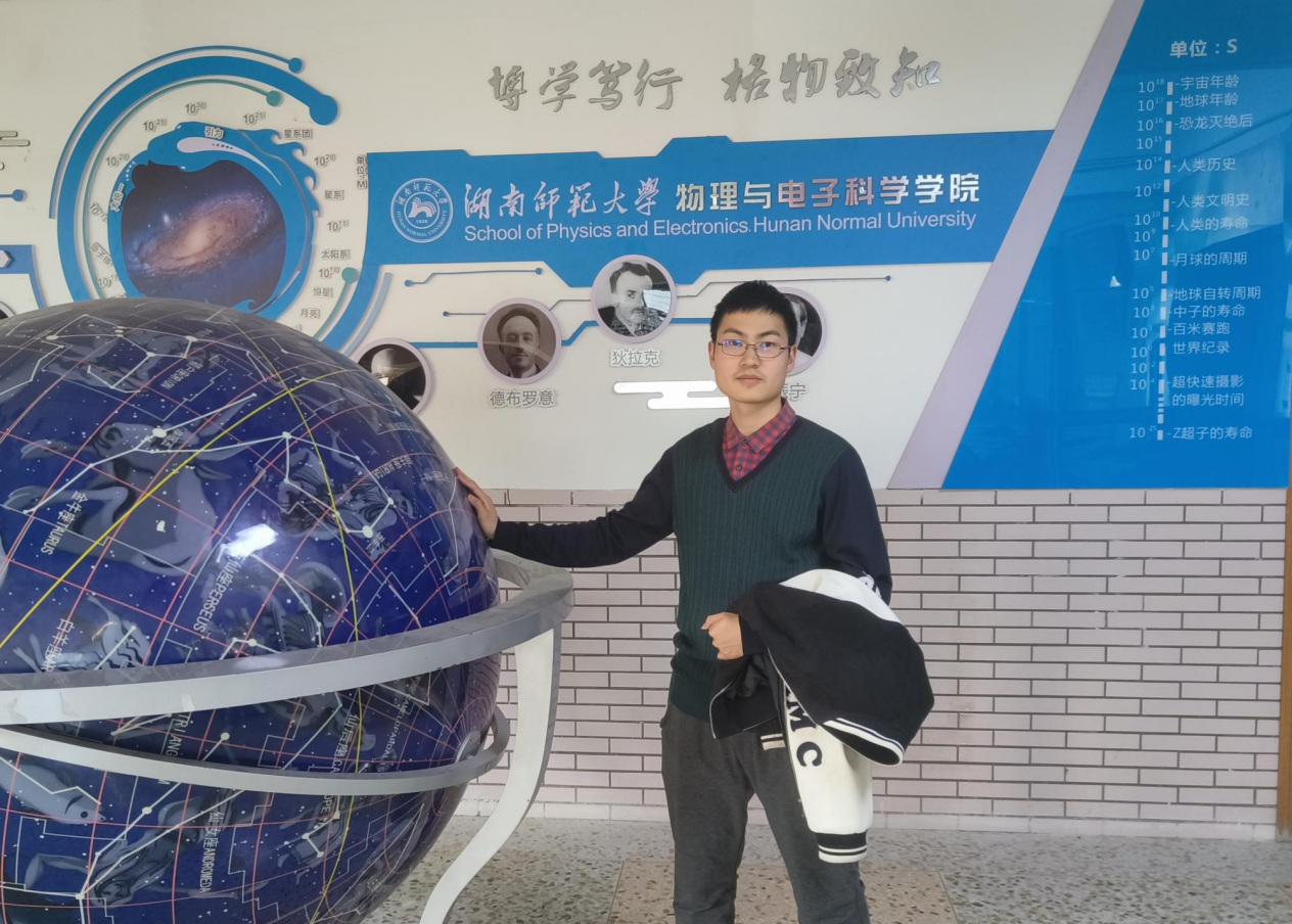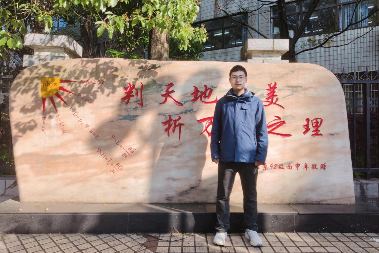 正所谓“厚积而薄发,博观而约取。”这句话正是对陈星羽的真实写照。三年来,陈星羽在学习上始终怀揣着满腔热情,以知识充盈内心,用学习提升自我。当谈到为什么选择物理专业时,陈星羽表示自己从小便对科学知识有着浓厚兴趣。面对一些奇妙的物理现象,他总是满腹好奇心地想要对其原理一探究竟。在初中和高中,他体会到了物理在描述客观规律时的简洁、有力。正是这份热爱,指引着陈星羽在物理学的大道上前进。