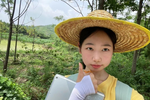郑咏诗从农村出发,考上数一数二的大学,走进车水马龙的都市,但过往的乡村生活永远是她心中的一片净土。在暑假,郑咏诗通过“三下乡”回到了熟悉的农村,回报着生养她的沃土。郑咏诗分享了一段温馨的故事:“记得当时我们暂住在学生家里,湖南七月份的太阳是很毒辣的,那间朝阳的房间被炙烤的滚烫,但房间里的空调却不争气地坏了,房间闷热得不行。家长们得知后,连夜为我们换了房间,又重新铺好床铺。‘三下乡’其实很累,十几天的日子我写出了将近二十篇新闻,但杨花村的人们对我们的善意一直让我很感动。”在漫漫夏季,郑咏诗逃离都市,走进田间地头,烈日下的汗水是她不凡坚毅的象征。