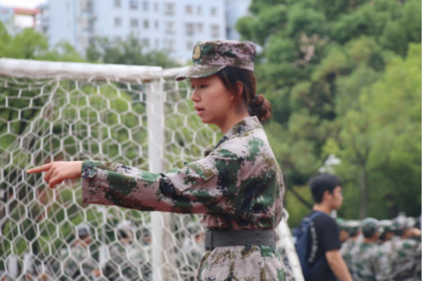 不管训练场上是阳光毒辣,还是风雨交加,周家凤永远身穿着整洁的军装,英姿飒爽、全神贯注地指挥着新生们的训练。她的声音坚定而有力,每声命令都如同锋利的剑,划开灼热的空气。她是军训中的铁血教官,对于每一位都一视同仁、公平公正。她的严厉让人敬畏,却也使得新生们能够在最短的时间内掌握军训的精髓。在她的带领下,新生们不仅锻炼了身体,更锤炼了意志;在她的训练中,每个人都学会了如何在困难面前不屈不挠、如何在失败中重新站起来。她是军训中的灵魂人物,是所有人心目中的楷模。