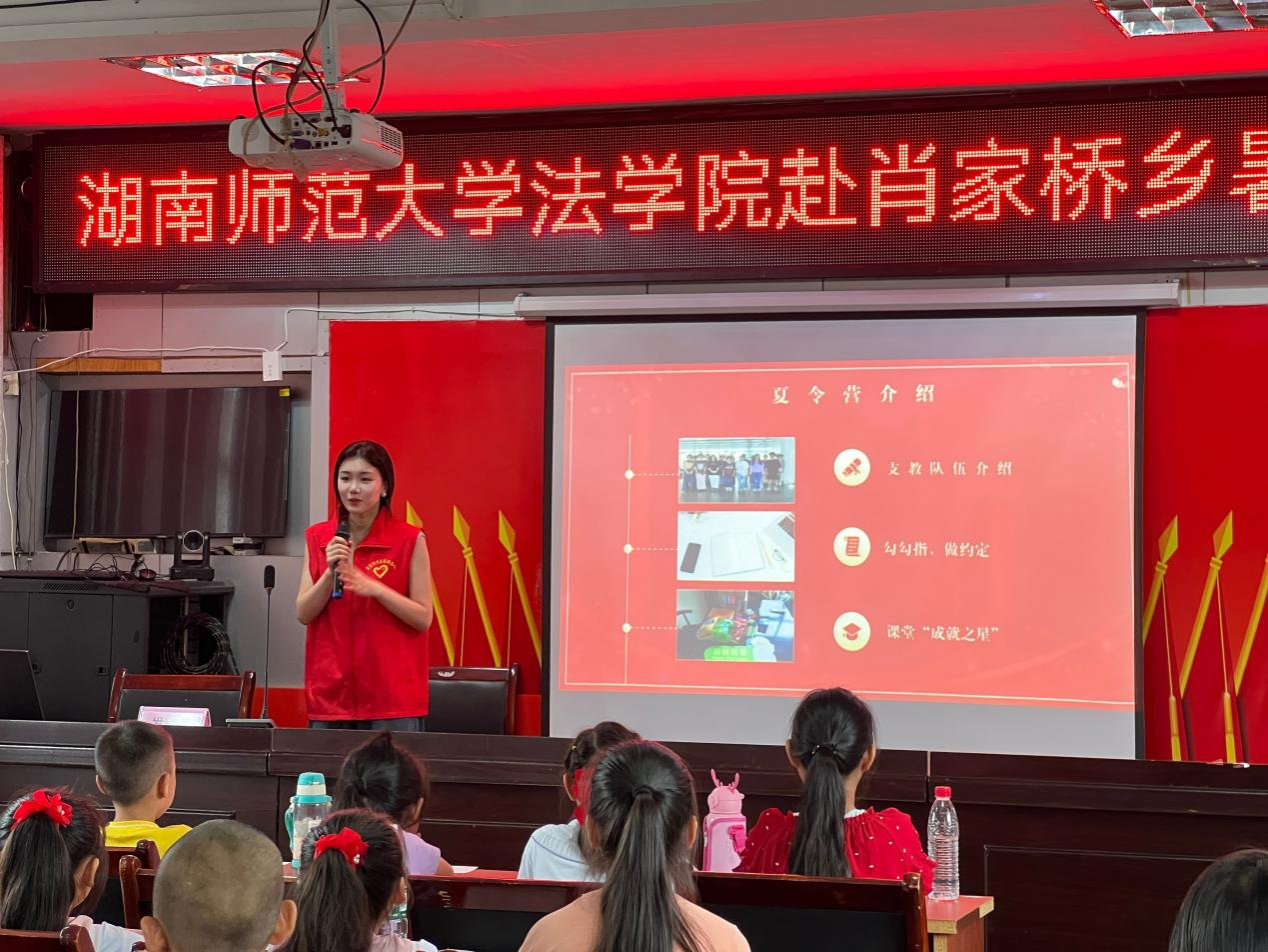 除了团委的工作外,吴晴宇还在今年七月份参与了三下乡活动,担任太阳成集团tyc法学院“与法同行”赴怀化市沅陵县肖家桥乡暑期社会实践团的队长。在这次活动中,她主持确定调研方向、召开每日总结会议、团结队员、保障团队安全、鼓励成员展现综合能力等工作,与队员和带队老师培养良好的下乡情谊。她带领团队成员开展陪伴留守儿童夏令营活动、实地走访调研肖家桥乡留守儿童权益保护情况,还和队员一起访谈,形成了329份有效调查问卷,总结了留守儿童权益保护与法制教育现状,主导写作调研报告一篇,聚焦留守儿童权益保护,又与镇政府接收单位协商,十五天三下乡之旅开展夏令营、送法下乡志愿活动、文艺汇演共十余场,深受当地村民和乡政府好评。谈及此次活动中印象最深刻的事时,吴晴宇回忆道:“最后的一场文艺晚会结束后,天空还在下雨,路面坑坑洼洼,但我们一行人结伴返回宾馆的路上,晚风习习,歌声悠扬,所有工作完成后的喜悦无法用言语来形容。”这次活动对她来说不仅是一次难忘的体验,也是一场收获与成长之旅,它将永远留在她的记忆中,成为她人生旅程中宝贵的财富。